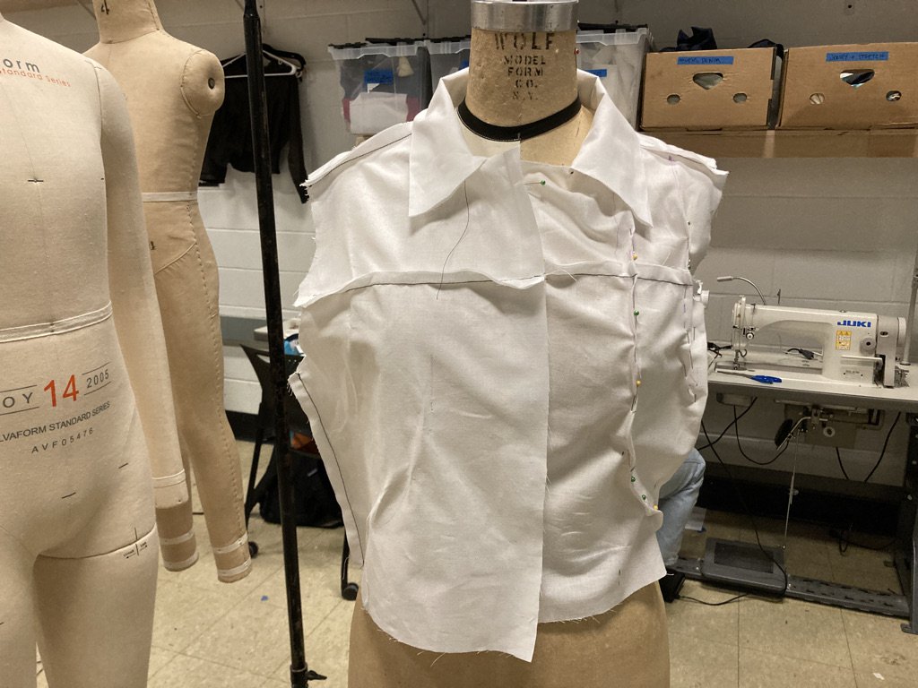 Beginning with making a custom bodice patterns the next step was to transform the bodice into something that resembled a jacket. A thrifted denim jacket as the basis for this new pattern.